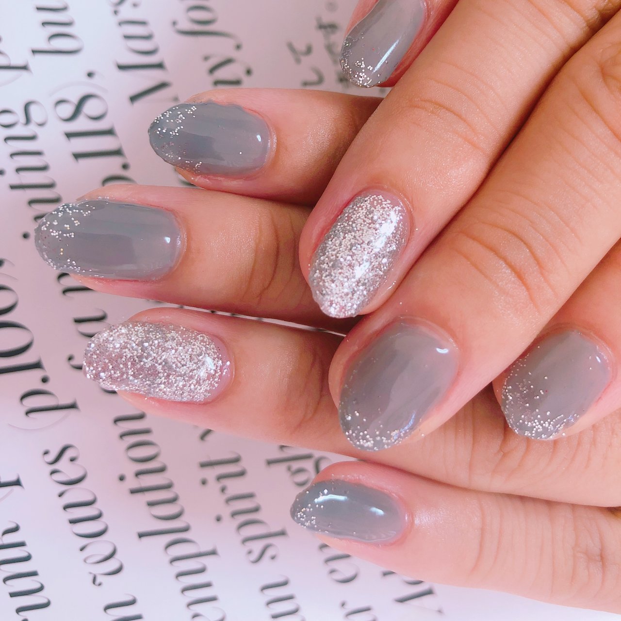 シンプルキラキラのグレーネイル Pg ネイルサロン ティディ Tidy のフォトギャラリー ホットペッパービューティー